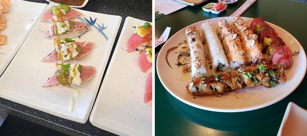 Beyond rolls, the menu includes appetizers like vegetable and shrimp tempura, gyoza potstickers, and fresh edamame. Staying true to authentic Japanese cuisine, nigiri options showcase fresh fish such as yellowtail, salmon, tuna, and freshwater eel. For those craving an extraordinary experience, Chef’s Specials like the Two Color and Haze Special rolls combine multiple textures and flavors, topped with eel sauce, spicy mayo, fried onions, and green onion for depth.